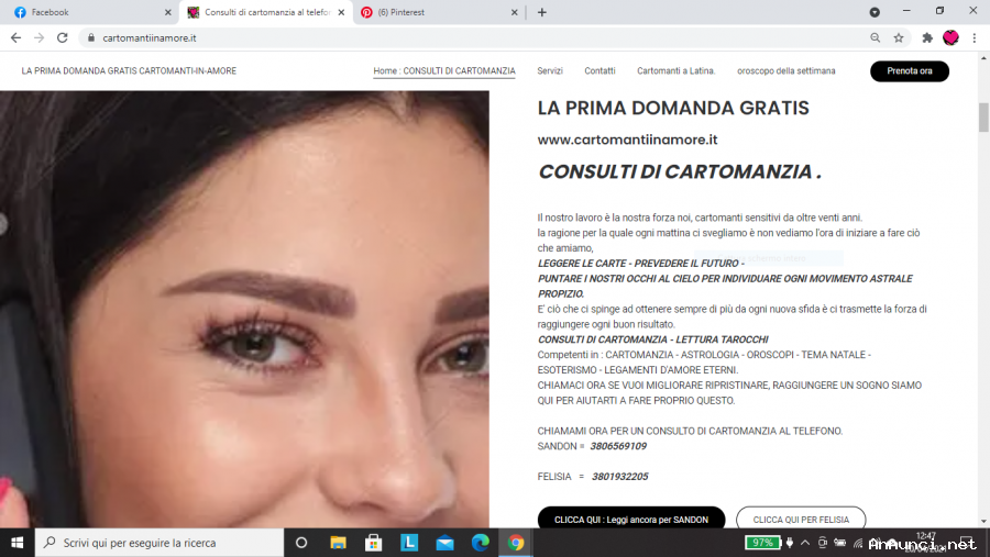 hai bisogno di chiarirti dei dubbi con FELISIA CARTOMANTE SENSITIVA ASTROLOGA hai questa possibilità CHIAMA 3801932205 PER UNA DOMANDA DI CARTOMANZIA GRATUITA TUTTI I GIORNI DAL lunedì alla domenica dalle 9 alle 22 NON PROSEGUENDO CON UN CONSULTO DI CARTOMANZIA A COSTI BASSI TI PRECLUDI LA POSSIBILITA DI RISOLVERE CON LA ACCURATA LETTURA DEI TAROCCHI E SIBILLE AVRAI LA RISPOSTA DI TUTTI GLI EVENTI CHE ACCADONO NELLA TUA VITA FUTURA PER OGNI CASO IMPOSSIBILE PURIFICAZIONE https://felisiacartomante.altervista.org