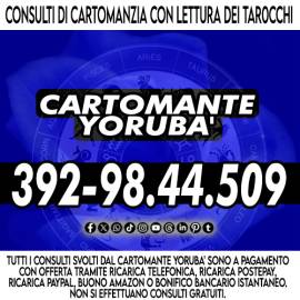Il Cartomante YORUBA' è specializzato in Amore, Lavoro e Fortuna. Consulti di Cartomanzia professionale di qualità a bassissimo costo. Il Cartomante YORUBA' offre, grazie al dono della Veggenza e Sensitività, una consulenza esoterica per aiutarti nelle relazioni di coppia difficili, per ritrovare serenità e benessere. Grazie alla lettura dei Tarocchi il Cartomante YORUBA' è in grado di vedere oltre l'orizzonte e quindi riuscire a darti le risposte che stavi cercando. Il Cartomante YORUBA' garantisce massima serietà, riservatezza e trasparenza. Il Cartomante YORUBA' vanta anni di esperienza e di studi nel campo della Cartomanzia e dei Tarocchi. Il costo di accesso al servizio è estremamente basso per offrire a tutti la possibilità di avere un consulto di altissimo livello ad un prezzo estremamente basso. Puoi chiamare tutti i giorni dalle ore 9 alle ore 21, festivi inclusi.