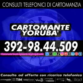 Astrologo Cartomante Sensitivo, Esperto Conoscitore del Mondo Esoterico. Da oltre 25 Anni Pratico Quotidianamente L'Arte della Tarologia, il Cartomante YORUBA' ti Aspetta per un Consulto di Cartomanzia con la Lettura dei Tarocchi. Le mie Doti mi Permettono di Fare delle Previsioni sul Presente e sul Futuro con Precisione e anche con Dovizia di Particolari. Ti Indichero' la Strada Migliore da Percorrere, ti Aiutero' con i miei Consigli. Chiama il Numero di Cellulare che Vedi nella Foto Presente in Questo Annuncio. Puoi Telefonare Tutti i Giorni dalle Ore 9 alle 21. Rispondo sempre io, il Cartomante Yoruba'. Il Consulto Ha un Limite di Tempo Fissato in 30 Minuti. Il Servizio e' a Pagamento con Offerta Libera con Ricarica Telefonica Prepagata. Se Chiami dall'Estero Puoi Pagare, oltre che con Ricarica Telefonica, anche con Bonifico Bancario.