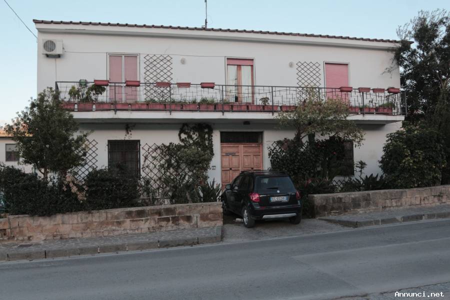 costruzione mista tufo e cemento armato sviluppantesi su due piani omologhi per una superficie totale coperta e calpestabile di ca 400mq, con un giardino posizionato in massima parte sul lato posteriore (la costruzione, grazie alla sua superficie regolare, è comodamente divisibile in quattro appartamenti e può essere trasformata in villa plurifamiliare)