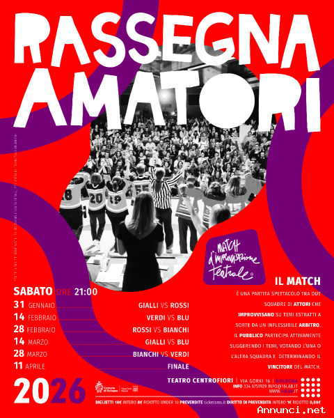 Il Match è uno spettacolo in cui 2 squadre di attori improvvisano su temi estratti a sorte da un inflessibile arbitro. Il pubblico partecipa attivamente suggerendo i temi, votando l’una o l’altra squadra e determinando l’andamento del match.