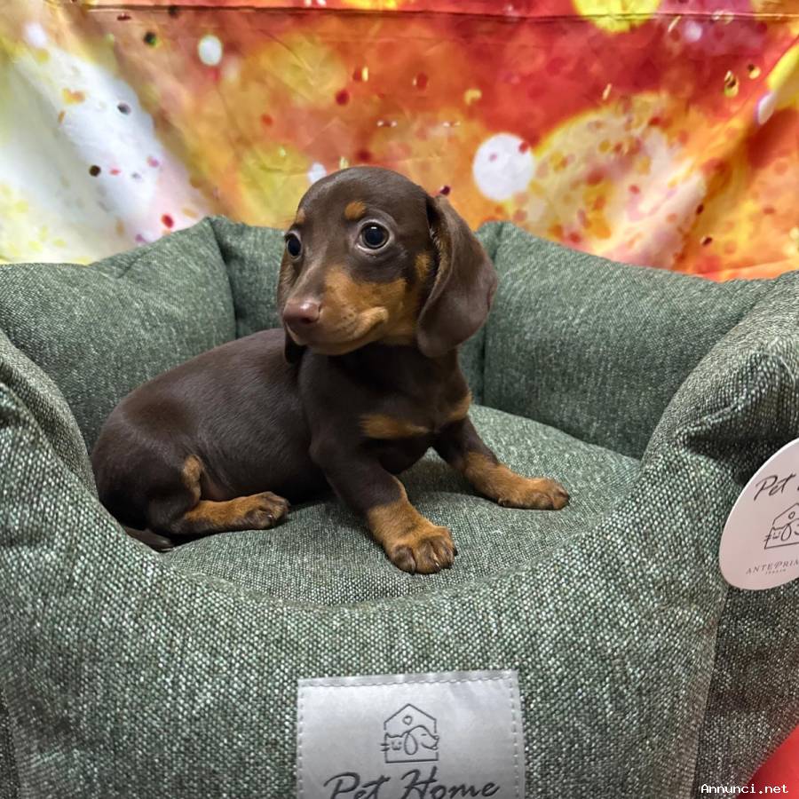 Disponibile cucciolo di Bassotto cioccolato maschio nato il 27/07/2025. Il cucciolo viene proposto alla vendita con vaccinazioni, sverminazioni, microchip n° 900233006102304, certificato sanitario veterinario e certificato di idoneità di prima origine. Possibilità di pagamento a rate.