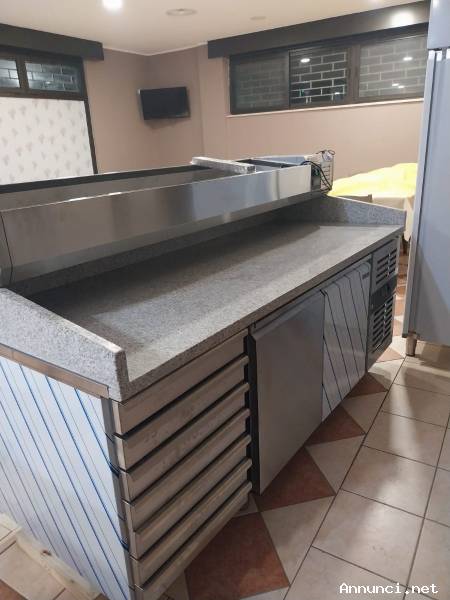 Vendesi banco frigo per pizzeria 2 m x 80 cm per causa misure errate, mai usato, compreso di porta bacinelle , vetro ancora sigillato come consegnato, naturalmente in garanzia 2 anni, pagato € 1800 vendo per € 1350 tutto compreso, oppure € 1000 solo il bancone, per ulteriori informazioni chiamare il 3890938946.