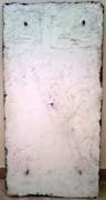 Decorativo pannello in gesso colore verde, diviso in due riquadri raffiguranti fabbro al lavoro, oggetto recuperato dal fronte dx di un camino (finto) del 1965, ivi fissato con 5 viti (vedi foto retro), ottime condizioni di conservazione, dimensioni: cm 50X100X2,5 spessore, peso kg 12..