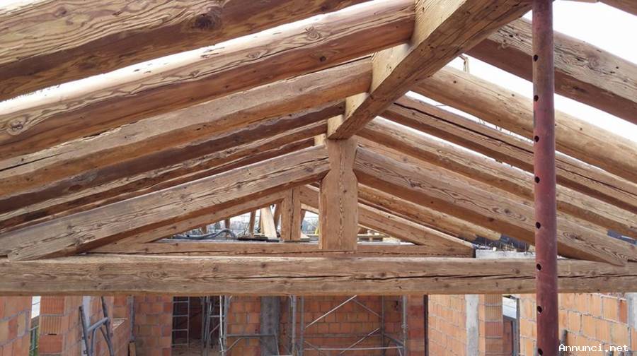 Realizzazione e posa di tetti e capriate in legno antico originale di recupero.