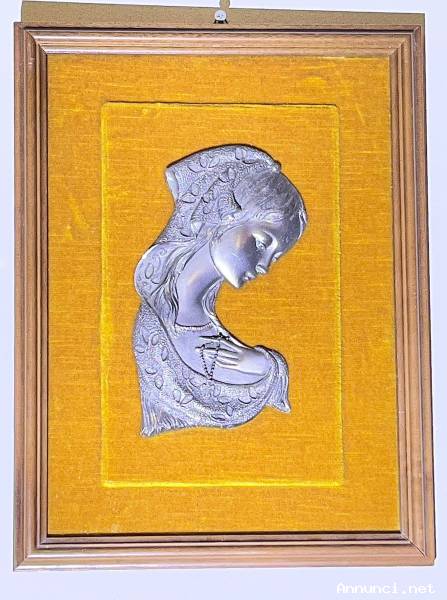 Bellissimo bassorilievo sacro vintage raffigurante la Madonna con il rosario.
