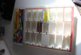 Matchbox Superfast Espositore Expo negozio plastica modellini 1971. In questa inserzione vendo singolarmente un espositore da banco/vetrina del marchio Matchbox, riporta la scritta "Nuove Superfast" e il copyriright è del 1971, misure circa cm 35x45, oggetto proveniente da stock di negozio chiuso anni fà, condizioni visibili in foto, ovvero usato con segni e imperfezioni dovute al tempo/uso ma più che diginitose e ancora splendido oggetto per arricchire o parcheggiare le proprie macchinine della serie. Composto da base contenitore macchinine e foglio in plastica trasparente con logo Matchbox. Non sono compresi adesivi o supporti extra. Visto e piaciuto.