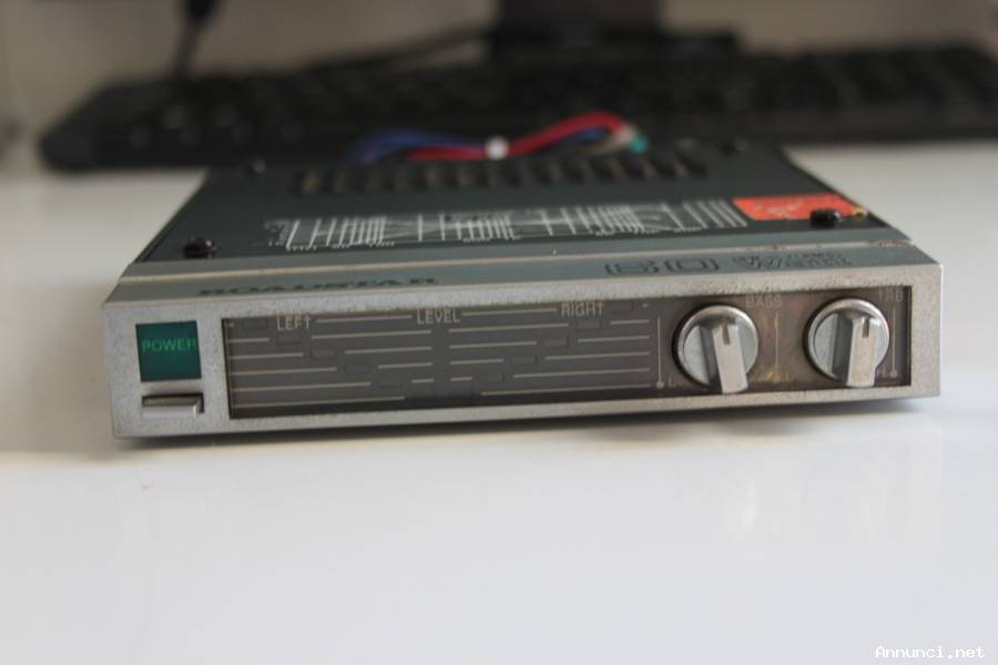 Roadstar rs-552 amplificatore da macchina, vintage, usato. Oggetto proveniente da fondo di magazzino, in condizioni e stato come da foto. Non ho possibilità di provarlo o testarne il funzionamento. Ideale per recupero componenti o per uso estetico su auto d'epoca, non escludo che funzioni, ma se ne consiglia ad ogni modo una revisione o un controllo da professionista competente. formato super mini, anche ideale per cruscotto di auto tipo fiat 500 / Morris Mini ecc. Condizioni e stato come da foto, visto e piaciuto.