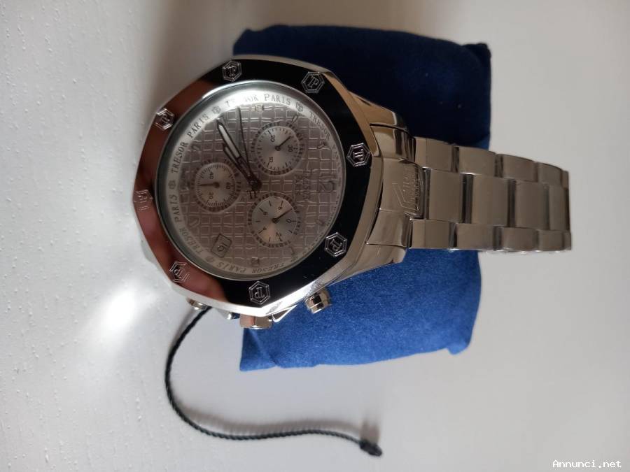 Sia il cronografo che la funzione datario sono alimentati da un movimento al quarzo. Uno della gamma di orologi prodotti dalla International Jewellery, Hatton Garden, orgoglioso Tresor Paris di Londra (Inghilterra), indossato da numerose celebrità.