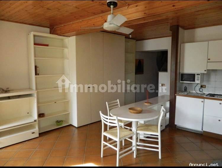 Laveno : In zona centrale e pedonale al 2°P. senza ascensore ampuo monolocale arredato : ingresso, grande locale con angolo cottura e pranzo, zona tv con divano , divano letto e armadii, bagno.