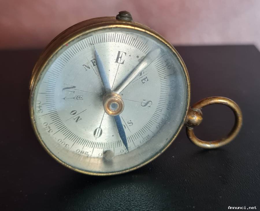 Antica bussola tascabile in ottone fine ottocento con fermo ago .Funzionante diametro cm . 4 spessore cm .0,4, presente piccola pallina di polvere che ruota ai bordi che non interferisce sul funzionamento ago . Vendo € 78. Gradito contatto telefonico Cell.3478314154