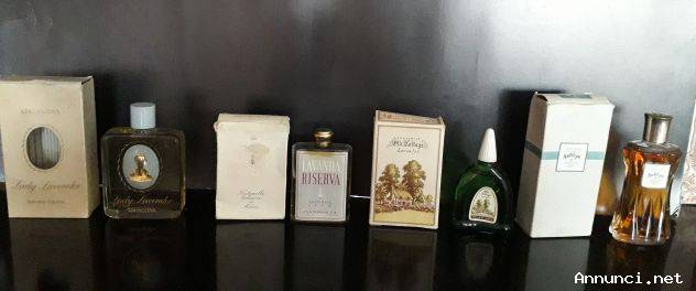 Collezione prufumi d'epoca n° 4 flaconi varie misure :ANTILOPE 80° Eau De cologne Parfum Weil Paris 580 W , 1 3/4 FL OZ , LADY LAVENDER Atkinsons Perfumed Cologne S.I.p.A Milano Lic. N° 284 Vol. cl.8,2 An. cl.6,56, LAVANDA RISERVA Cantinato 1930 Fontanella Milano cc. 55 Gr .80 Lic. 122,flacone 60%,Grossmith London OLD COTTAGE Lavender N° 73/2 Herba -Bauer ,licenza N° 735 Milano , ANI cc.22,4 ,IDR cc.28 . Vendo a partire da €48 cadauno.Gradito contatto telefonico . Cell. 3478314154..