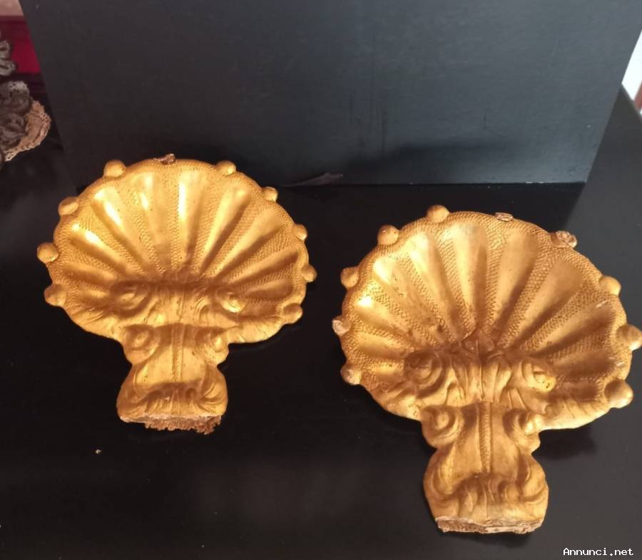 Coppia Antiche Conchiglie Cartapesta Dorata . Sul retro anello originale in tessuto . Piccole mancanze sui bordi come da foto. Dimensioni cm. 21 x cm. 20 x cm .5. Peso singolo gr 129 .Vendo € 238 .Gradito contatto telefonico wapp. Cell.3478314154