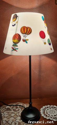 Piero Fornasetti per Antonangeli lampada da tavolo vintage mongolfiere , con la classica stampa su paralume realizzato in polipropilene bianco, la struttura non originale è in metallo. Sul paralume è presente sia il marchio Fornasetti sia il marchio Antonangeli, dimensioni altezza cm .50 diametro max paralume cm. 23 minimo cm .13.Vendo a € 188. Gradito contatto telefonico wapp . Cell. 3478314154