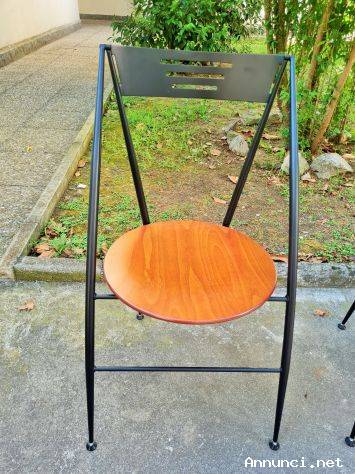 Set N°4 sedie pieghevole Calligaris design anni '80 in metallo e legno di ciliegio in ottime condizioni , leggero piccolo graffio su un una seduta,come da foto. In dotazione carrello da sostegno con rotelle . Dimensioni : cm 45 x 55 x h 85 . Non spedisco. Vendo a € 330 . Gradito contatto telefonico wapp . Cell.3478314154