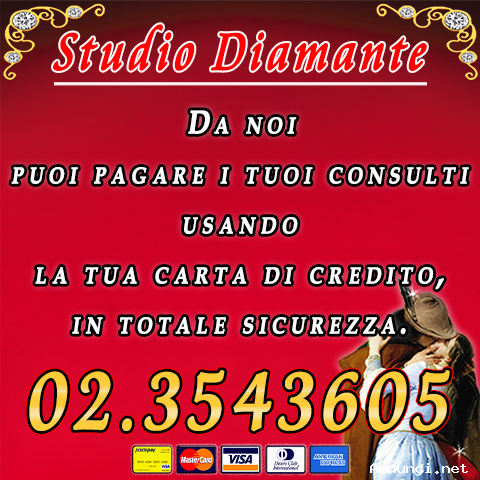 I tuoi problemi ci stanno a cuore e desideriamo aiutarti a risolverli. Chiamaci con fiducia allo 023543605 e ponici tutte le domande che ti preoccupano su amore, fortuna, o lavoro. 25 minuti di consulto ti costano solo 10 € e puoi pagare con la tua carta di credito, in totale sicurezza e senza il timore di altri addebiti. I nostri cartomanti sensitivi sapranno assisterti, rispondendoti con sincerità e fornendoti i consigli giusti. Ti aspettiamo da lunedì a venerdì, dalle 9 alle 20. A presto