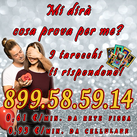 Frequenti una persona da diverso tempo, ma non si è ancora sbilanciata riguardo i suoi sentimenti? Vuoi sapere se e quando lo farà? Chiamaci con fiducia all’899585914 e chiedilo ai tarocchi. Le nostre cartomanti sensitive, esperte e professionali, sapranno aiutarti, rispondendoti con sincerità e fornendoti i consigli giusti. Siamo a tua disposizione 24 ore su 24, 7 giorni su 7. Ti aspettiamo, a presto