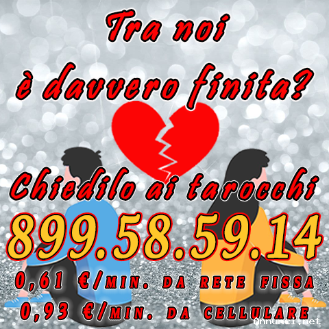 Tra te e la persona che ami ci sono state delle divergenze, o delle liti? Per questo vi siete allontanati e ora hai paura che la vostra relazione sia finita? Chiamaci con fiducia all’899585914, per sciogliere i dubbi che ti assillano. Le nostre cartomanti sensitive, esperte e professionali, sapranno aiutarti, rispondendoti con sincerità e fornendoti i consigli giusti. Siamo a tua disposizione 24 ore su 24, 7 giorni su 7. Ti aspettiamo, a presto