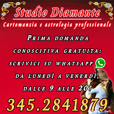 L'amore, il lavoro, o il denaro, ti danno delle preoccupazioni? Non lasciare che i dubbi ti tolgano la serenità! Sorridi, hai una domanda conoscitiva gratuita da fare ai nostri cartomanti: scrivici su WhatsApp al numero 3452841879 e ti risponderemo al più presto. Se poi vorrai proseguire il consulto telefonicamente, 25 minuti ti costeranno solo 10 €. Siamo a tua disposizione da lunedì a venerdì, dalle 9 alle 20. Ti aspettiamo, a presto