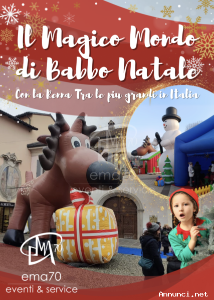 N.1 casetta di Babbo Natale alt 3.30mt + 3 x 3 mt scenografica +N.1 Renna Gigante