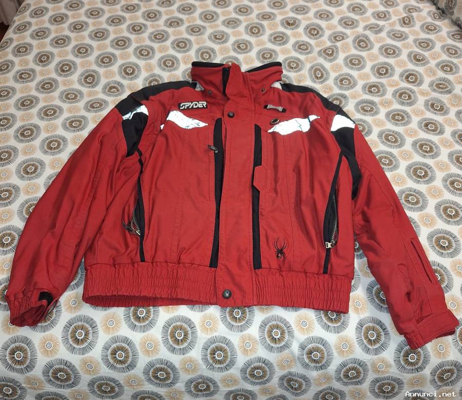Tuta da sci da uomo, marca Spyder, colore rosso con inserti bianchi, neri e argentati, composta da salopette e giubbotto. La giacca presenta 5 tasche esterne e 2 interne. Cappuccio estraibile. Maniche staccabili, la giacca è utilizzabile anche come gilet. Thinsulate insulation. Taglia 54. (Adatta per una persona di 185/190 cm 80/90kg) Vestibilità ampia - La lunghezza del giubbotto è di 67 cm circa davanti e 70 circa dietro. La manica è lunga 60 cm circa con cerniera. Le spalle misurano 58 cm. Il pantalone/ salopette è lungo 110 cm e il giro vita è di 93 cm larghezza massima e 85 cm larghezza minima. Il pantalone ha 2 tasche. Buone condizioni generali.