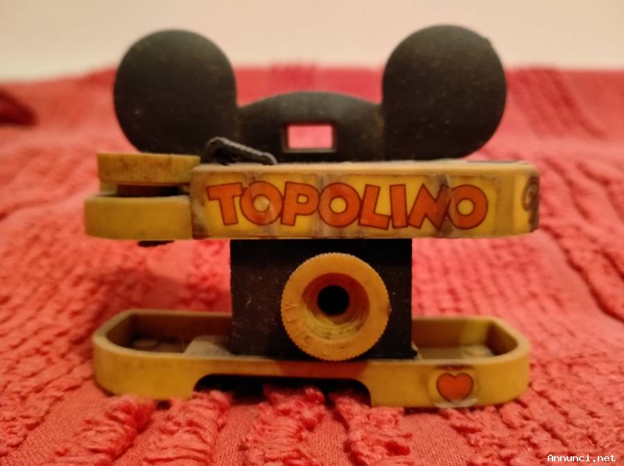 Storica macchinetta fotografica di Topolino, anni ’90, biodegradabile. Quasi certamente non funzionante e mancante della lentina davanti (che credo comunque possa essere reperita senza troppa difficoltà in commercio), presenta tutti i segni del tempo, oltreché un montaggio non effettuato propriamente a regola d’arte. Magari, comunque, con un adeguato restauro chissà che non torni funzionante e splendente. Preferibile, ma non indispensabile, la consegna e il pagamento di persona, altrimenti ci sono da aggiungere 10 € per la spedizione; in quest'ultimo caso richiedo il pagamento tramite ricarica Postepay. NON ACCETTO LA RESTITUZIONE DELL'OGGETTO.