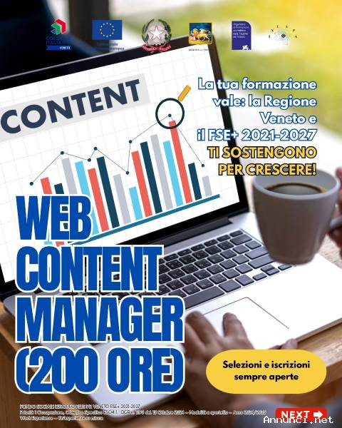 Il percorso di Web Content Manager prevede 200 ore di formazione.