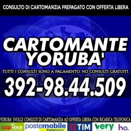 Si offre un servizio di cartomanzia a basso costo con il Cartomante Yoruba'. Si leggono i classici Tarocchi, le 22 carte degli Arcani Maggiori. I consulti vengono svolti telefonicamente chiamando il numero di cellulare che potete vedere nella foto in allegato in questo annuncio. Chiama con fiducia per avere maggiori informazioni circa la modalità del consulto. Il consultante che richiede e svolge un consulto è pregato di lasciare un'offerta libera con una ricarica telefonica (TIM, KENAMOBILE, POSTEMOBILE, ILIAD, SPUSU, VERY, VODAFONE, COOPVOCE, ecc...) oppure in alternativa PostePay secondo cio' che verrà comunicato preventivamente in sede telefonica. Il tempo a tua disposizione per il consulto è di 30 minuti. L'orario è il seguente: tutti i giorni (anche durante i giorni festivi) dalle ore 9 alle 21 (orario continuato).