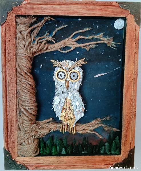 Realizzato con tecnica mista materiali riciclati e dettagli meccanici.