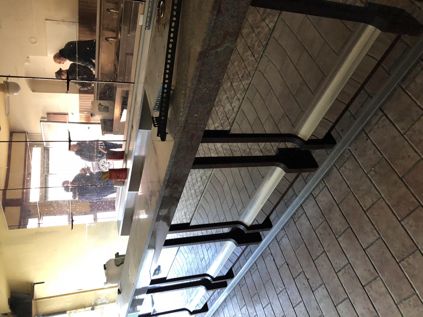 Regalo bancone bar in buono stato per cessata attività. Il bancone è in legno e acciaio con dietro specchiera, pedana e mobile per bicchieri e articoli da bar. L’acciaio è in ottimo stato e il piano di servizio è in granito rosso venato