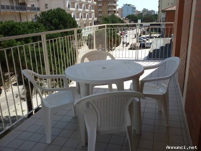 Lido di Savio. App. TRIS 2. Appartamento sul lungomare completamente ristrutturato, a 50 metri dalla spiaggia, in palazzina con ascensore, al 2° piano, composto da: sala con angolo cottura, lavatrice, forno alto e frigorifero con freezer a cassetti, divano letto e balcone abitabile attrezzato con tavolo e sedie con bella vista mare a 180°, una camera matrimoniale con portafinestra sul balcone, una cameretta con letti a castello, bagno finestrato con doccia a pavimento, aria condizionata, 5/6 posti.