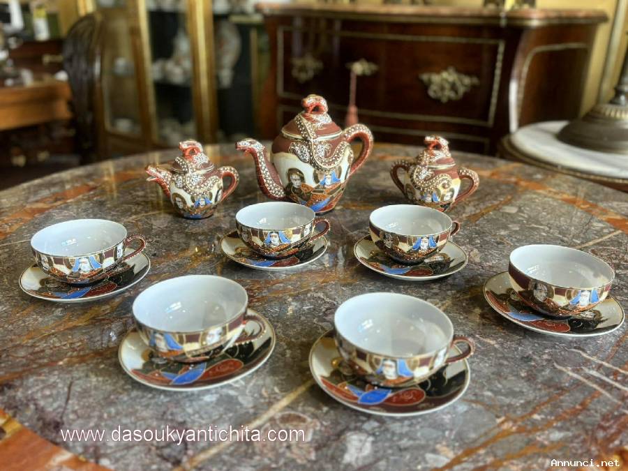 Composto da teiera , zuccheriera e lattiera lavorati con la tecnica moriage raffiguranti un drago in rilievo che avvolge il corpo e il coperchio dei tre elementi , con la testa che forma il beccuccio.