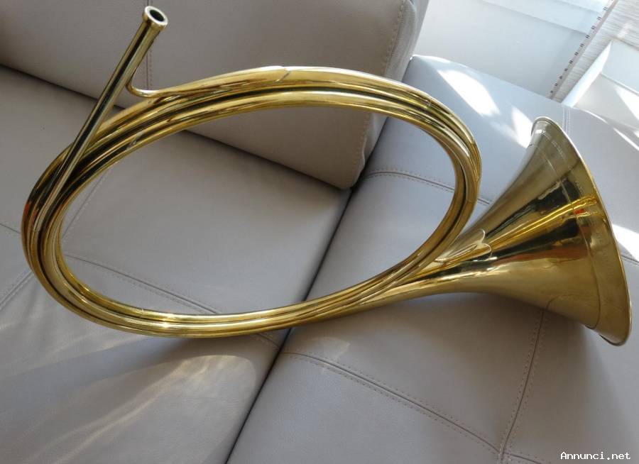 Corno da caccia in rame marchiato FRANCOIS PERINET "Rue FABERT 40 BIS PARIS CI-DEVANT RUE COPERNIC"