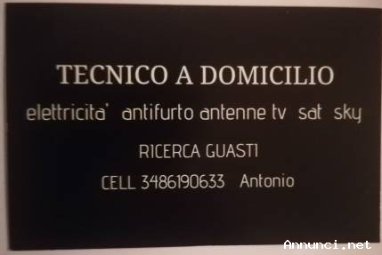 RICERCA GUASTI 3486190633 ELETTRICISTA A DOMICILIO ROMA CELL 3 4 8 6 1 9 0 6 3 3 ASSISTENZA TECNICA A DOMICILIO RICERCA GUASTI 24 0RE SU 24 ANCHE I FESTIVI ROMA E PROVINCIA ELETTRICO ( PRESE- INTERRUTTORI-QUADRI ELETTRICI ) CITOFONI VIDEOCITOFONI ANTIFURTI ( VIA FILO, RADIO, ) RILEVATORI IR INTERNO RILEVATORI VOLUMETRICI ESTERNO RILEVATORI PERIMETRALI ESTERNO ANTENNE. TERRESTRI ( VHF-UHF-5 BANDA )- CITOFONI DIGITALE TERRESTRE - PROGRAMMAZIONE ANT. SATELLIARI SKY- TELEFONIA ( CENTRALINI - PRESE TELEFONICHE - VERIFICHE LINEA ) IMPIANTI SATELLITARI MY SKY HD ASSISTENZA TECNICA SATELLITI TUTTI ( HOT BIRD 6/8/9 ASTRA 1H/1KR /1L HELLAS SAT 2 EUROBIRD 9A ECC. ) TELECAMERE A C.C. VIDEOCITOFONI COMPUTER - TRASMISSIONE DATI ( ARMADI RACH- PANNELLI DI PERMUTAZIONE, PRESE TD ) SISTEMI ANTINCENDIO ( CENTRALINA - RIVELATORI ) CELL 3486190633 ZONE SERVITE DA UNITA MOBILE ROMA E PROVINCE