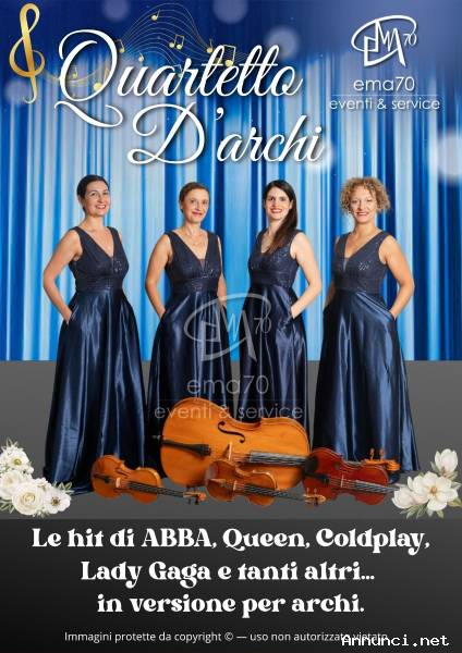 Un concerto elegante e coinvolgente in cui violini, viola e violoncello reinterpretano grandi classici e hit contemporanee in una raffinata chiave strumentale.