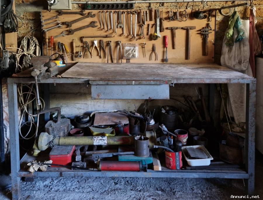 BANCO-Tavolo in metallo da officina. Misure cm152x 70 alto 88, cassetto cm50x67 alto cm14.  Sopra Banco portaattrezzi cm 155 alta 52. Morsa parallela in acciaio (no Ghisa) cm 10. Vendo causa decesso del proprietario. €200 (solo la morsa in acciaio costa molto di più. Tel. 3387574789. Altri oggetti trattative separate.