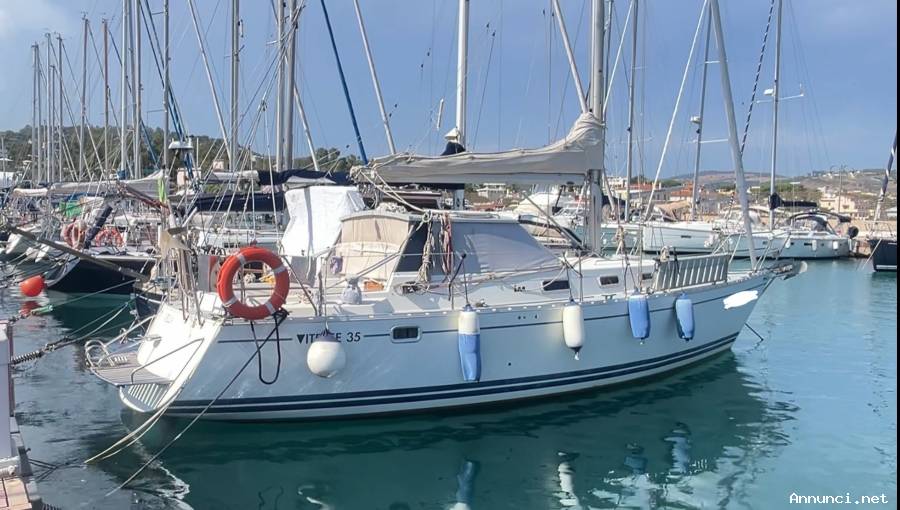 LM 35 VITESSE CABRIO del 1992, motorsailer danese molto marina, progetto Bent Andersen, linee d’acqua derivate da racer plurivincitore dello stesso progettista coniugate alla sicurezza e alla comodità delle migliori barche da crociera, chiglia a basso pescaggio con bulbo ellittico imbullonato su traliccio dí putrelle in acciaio zincato. Anno di immatricolazione 1993, bandiera italiana, due proprietari, LFT 10,60, lunghezza scafo 10.25, lunghezza al galleggiamento 8.40, baglio massimo 3.20, pescaggio 1.50, dislocamento 5.600kg, zavorra 2.150, randa 24,10 m2, genoa avvolgibile 35.80 m2, MPS 80m2 su RollGen Bamar + attrezzatura SPI, motore volvo 2003T 45cv s-drive con raffreddamento ad acqua dolce, elica max prop a 4 pale abbattibili, elica di rispetto a 2 pale fisse, acqua 325 l, gasolio 100+100 l, cuccette 6+1, scafo in vetroresina rinforzata spalmata a mano, ponte a sandwich di balsa, messa a terra con dynaplate montato in chiglia, randa con carrelli FREDERIKSEN, lazy jacks, lazy bag, vang rigido, avvolgi fiocco PROFURL alloggiato sottocoperta, manovre rinviate in pozzetto, 2 winches elettrici self tailing ANDERSEN ST46,buone condizioni generali, elica di prua, antenna tv doppia timoneria (interna a ruota, esterna a barra). Possibilità di subentro posto barca. Visibile a Santa Marinella (RM).