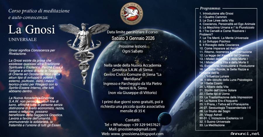 La Nuova Accademia Gnostica di Siena come Scuola di Meditazione per il Risveglio della Coscienza inizia il Corso Pratico: LA GNOSI UNIVERSALE