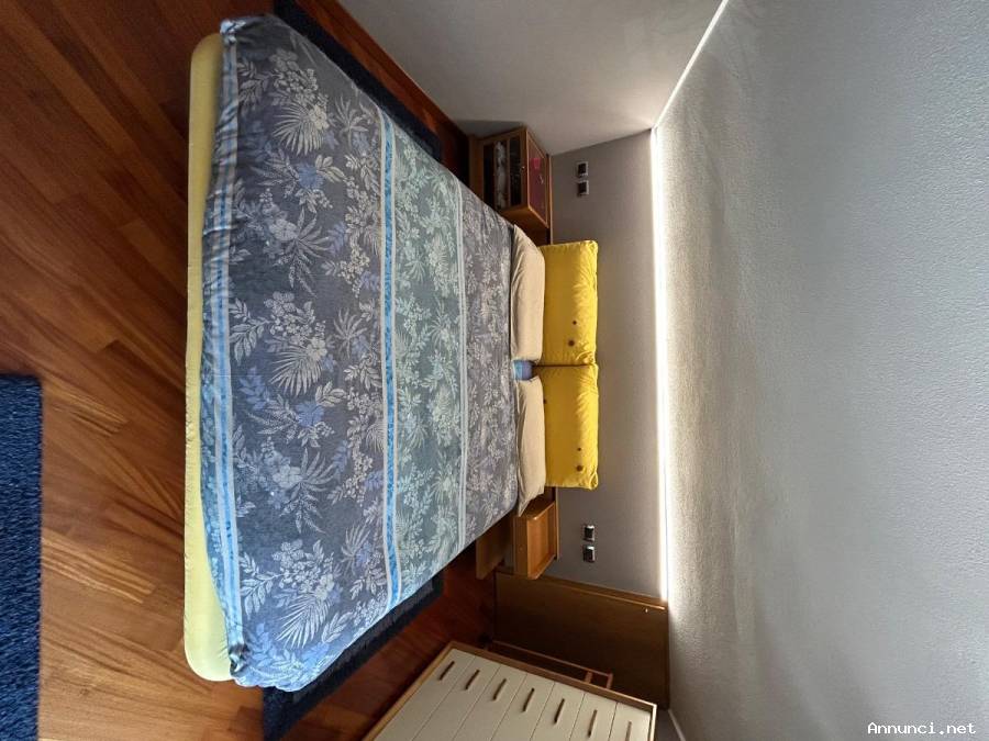 Letto matrimoniale completo di rete a doghe, materassi e struttura porta comodini.