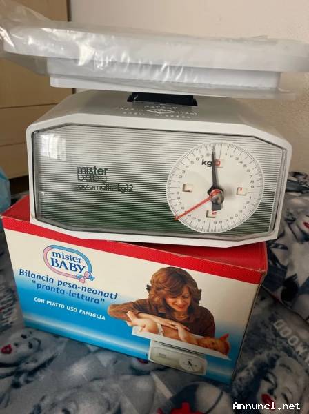 MISTER BABAY BILANCIA PESA NEONATI DAI 0-12 MESI DOTATA SOLO DI PIATTO FAMIGLIA.MANCA SOLO IL PIATTO PESA NEONATI.CON QUADRANTE AD OROLOGIO PER FACILITARE LA LETTURA.LA FINESTRELLA INDICA I CHILOGRAMMI MENTRE LA LANCETTA I DECIGRAMMI.PORTATA MASSIMA 12 KG.VENDO EURO 10 TEL.3501415218 IN OTTIME CONDIZIONI E PERFETTAMENTE FUNZIONANTE.