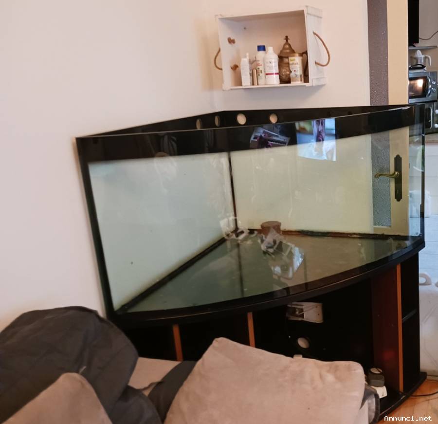 Vendo acquario Lunghezza lato 940 X 940 mm altezza 630 mm con mobile sottostante a vetri, capacita’ circa 350 lt in buone condizioni