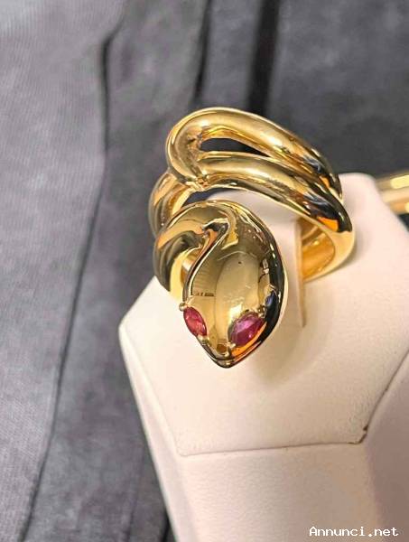 Anello serpente in argento 925 placcato oro 18 Kt gr. 12.40 con rubini negli occhi. Prezzo: 340 € (Iva già inclusa)