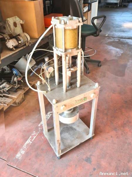 Apriscatole pneumatica usata, si tratta di una pressa da banco con coltello per aprire barattoli di sottaceti e pelati di marca Montanari mod. PTO.5 del 1991, vedere foto, è da sistemare perciò la vendiamo a buon prezzo nelle condizioni in cui si trova, non siamo riusciti a provarla, ci sono valvole e quant'altro ma mancano gli interruttori di sicurezza;