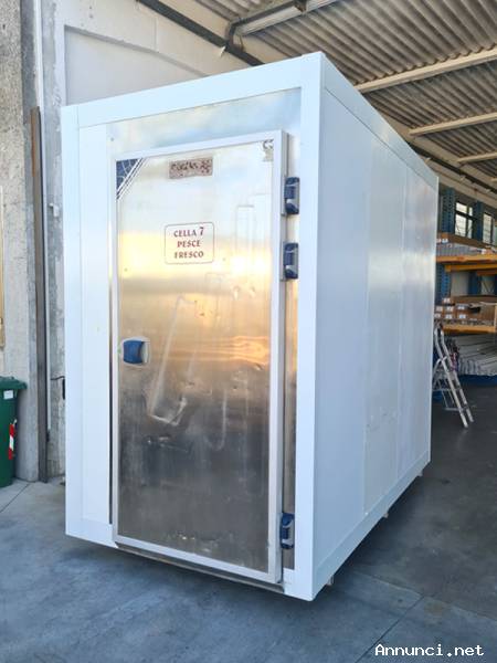 Cella TN monoblocco usata, si tratta di una cella refrigerata temperatura normale monoblocco realizzata con pannelli nuovi di seconda scelta di spessore 6cm e porta con luce 95X210cm. Vedere foto;