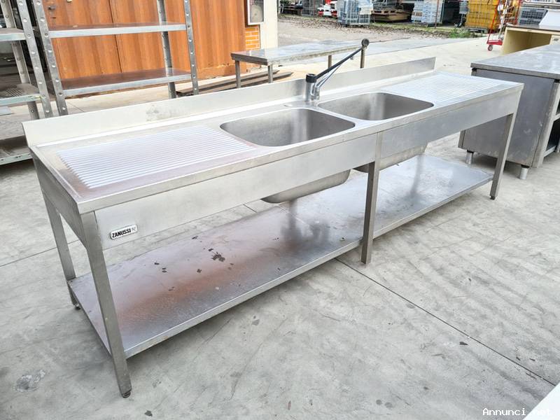 Lavatoio doppia vasca e due sgocciolatoi usato, si tratta di un lavatoio in acciaio inossidabile dotato di due vasche, due sgocciolatoi, ripiano inferiore e completo di rubinetteria, vedere foto;