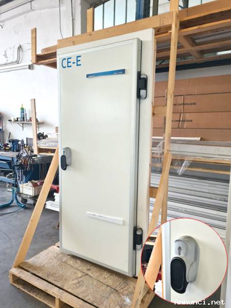 Porte frigo con serratura magnetica usate, si tratta di due porte NUOVE per celle frigorifere (sono state usate per esposizione fieristica) una con cerniere dx e l'altra sx adatte per essere montate su spessore 8cm e sono complete di contro telaio ma su richiesta possiamo fornire il materiale per montaggio su spessori maggiori, con luce porta 80X210cm dotate di chiusura magnetica e magnetica + standard, vedere foto;