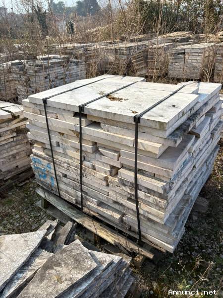 Lotto costituito da rimanenze di marmo in blocchi, semiblocchi, informi, pietrame, lastre, filagne e piastrelle, oltre lotto espositivo e tavolo da esterno in marmo.